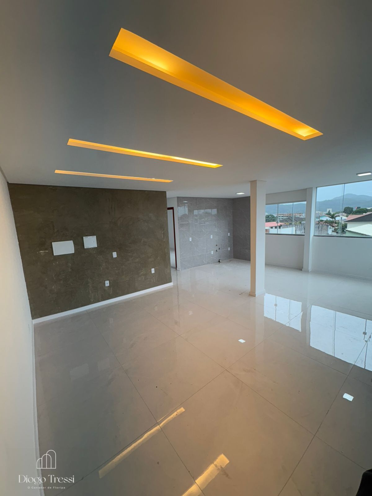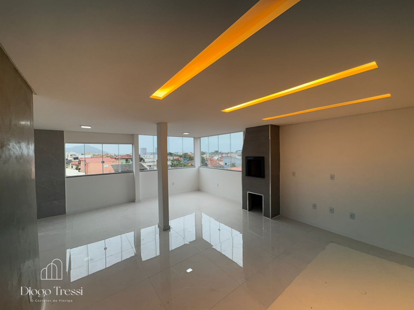 - Acabamento em gesso com iluminação em LED;